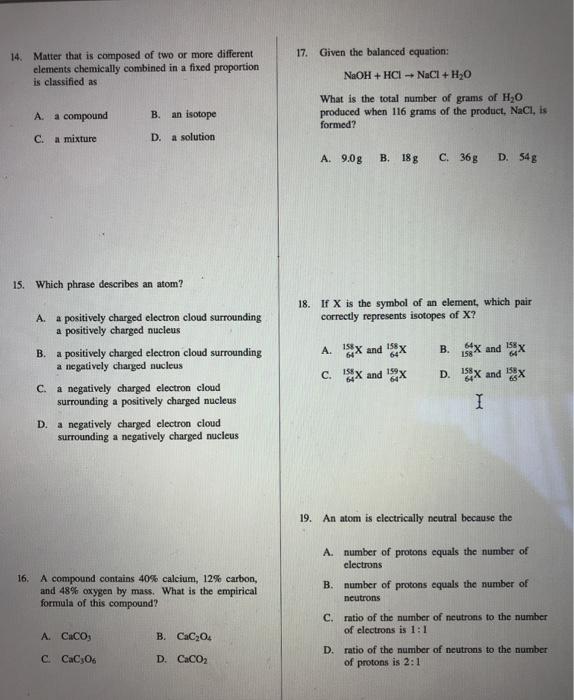 Solved 14 Matter That Is Composed Of Two Or More Different Chegg Com